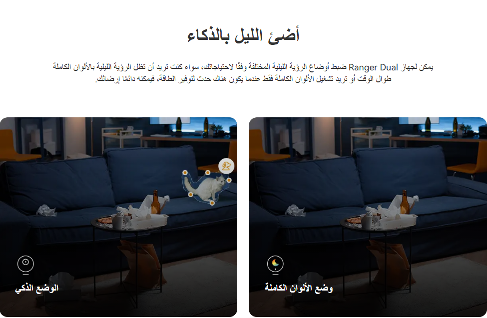 - كاميرا مراقبة تدعم الرؤية الليلية الذكية لمراقبة واضحة في الظلام دون الحاجة لأي مصدر ضوء إضافي