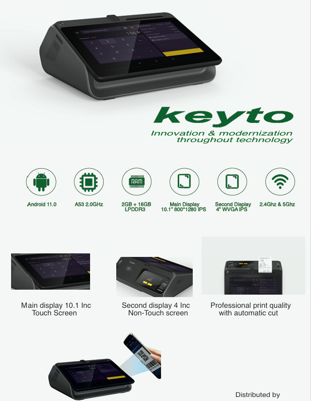 يُعد جهاز الكاشير الخيار الأمثل للمطاعم، والاعمال الحديثة حيث يجمع بين الأداء القوي والتصميم المدمج. يوفر هذا الجهاز تجربة استخدام سلسة بفضل نظام التشغيل أندرويد 11، ومعالج رباعي النواة، ويأتي مزودًا بشاشة رئيسية كبيرة مقاس 10.1 بوصة.